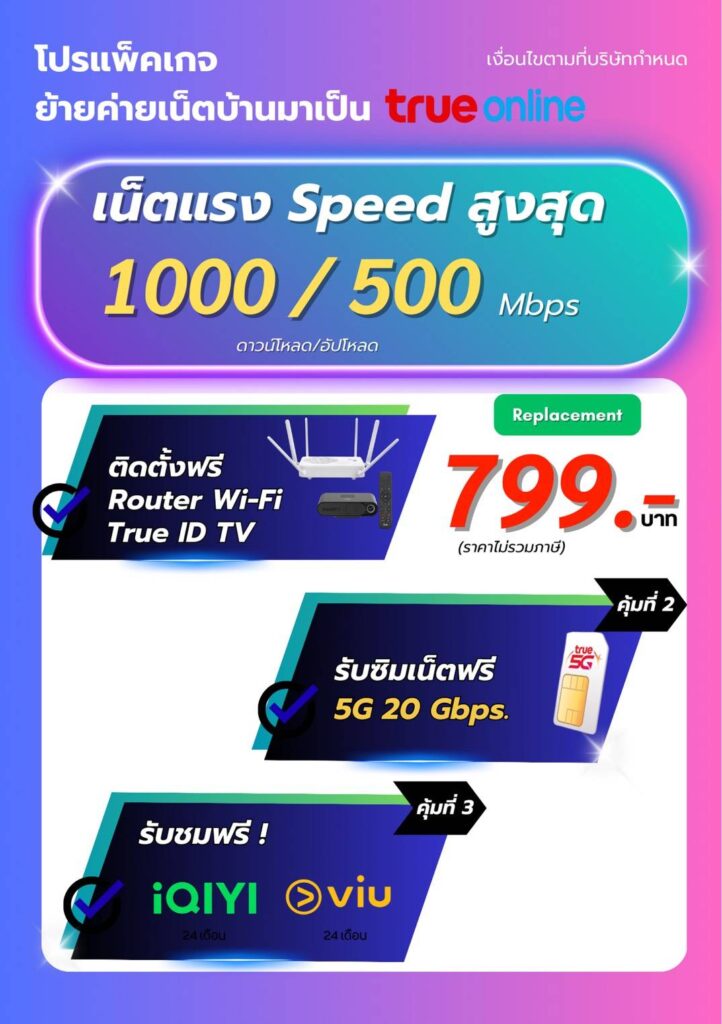 ติดเน็ตบ้านทรูราคา ฿499 True Online ติดตั้งฟรีไม่คิดเพิ่ม