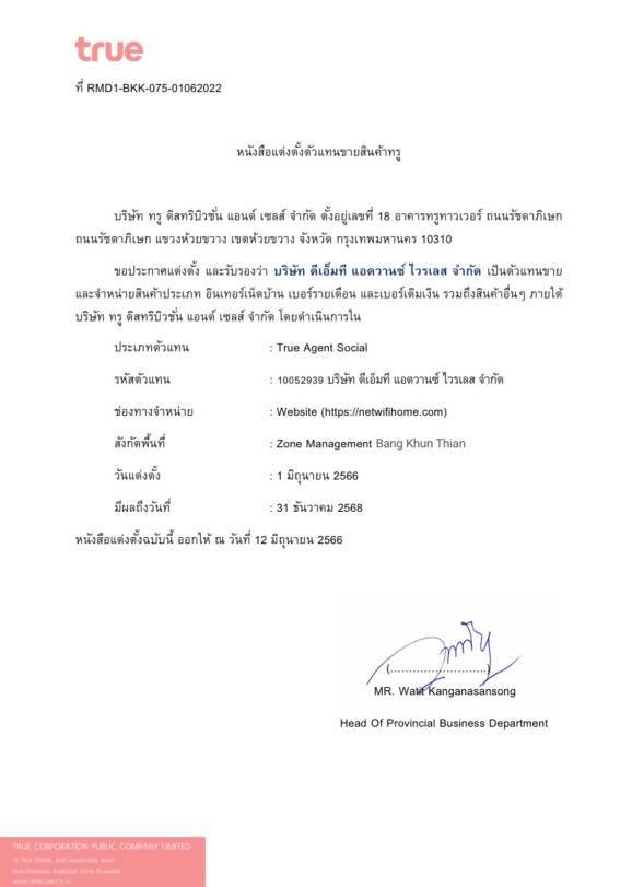 เป็นตัวแทนจำหน่ายเน็ตบ้านทรูอย่างถูกต้อง